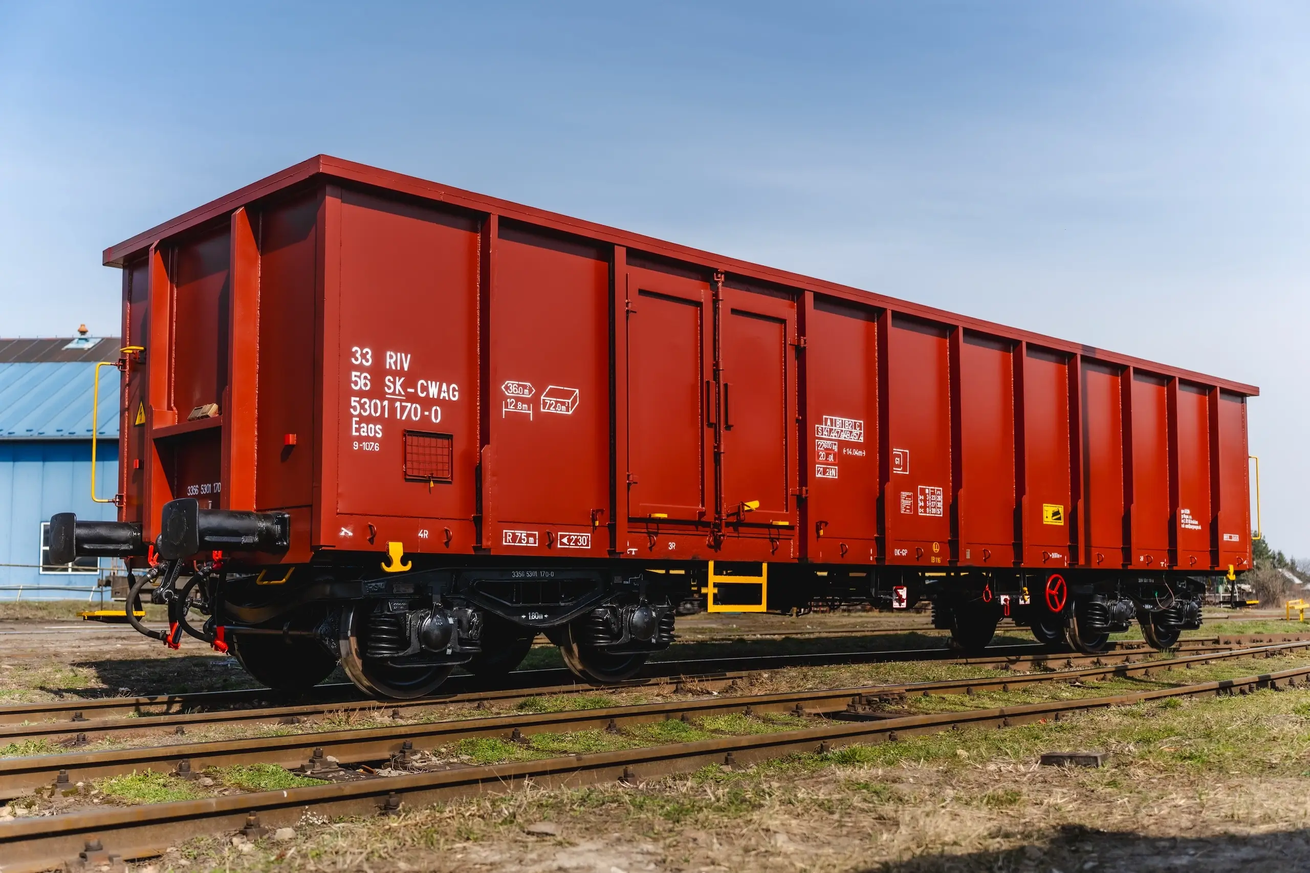 An open high-sided wagon designed for transporting bulk, loose materials, or piece goods that do not require a covered space or protection from weather conditions. This wagon is not suitable for transporting scrap.
