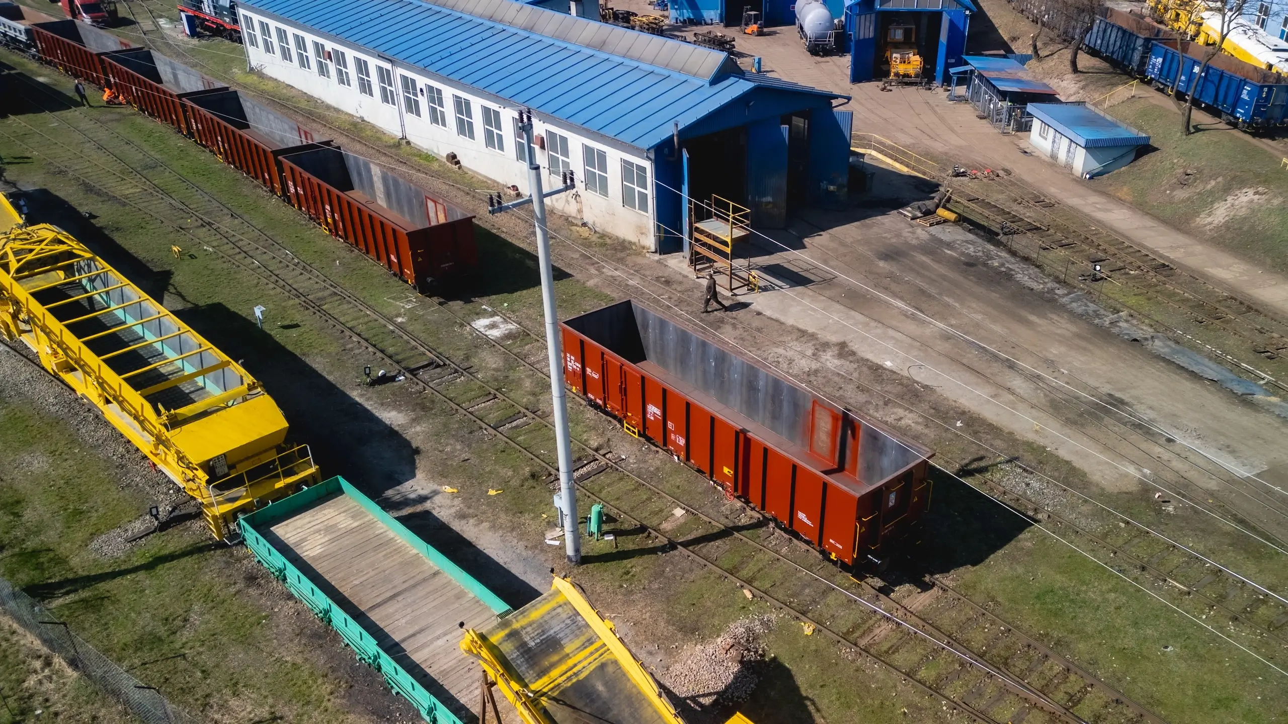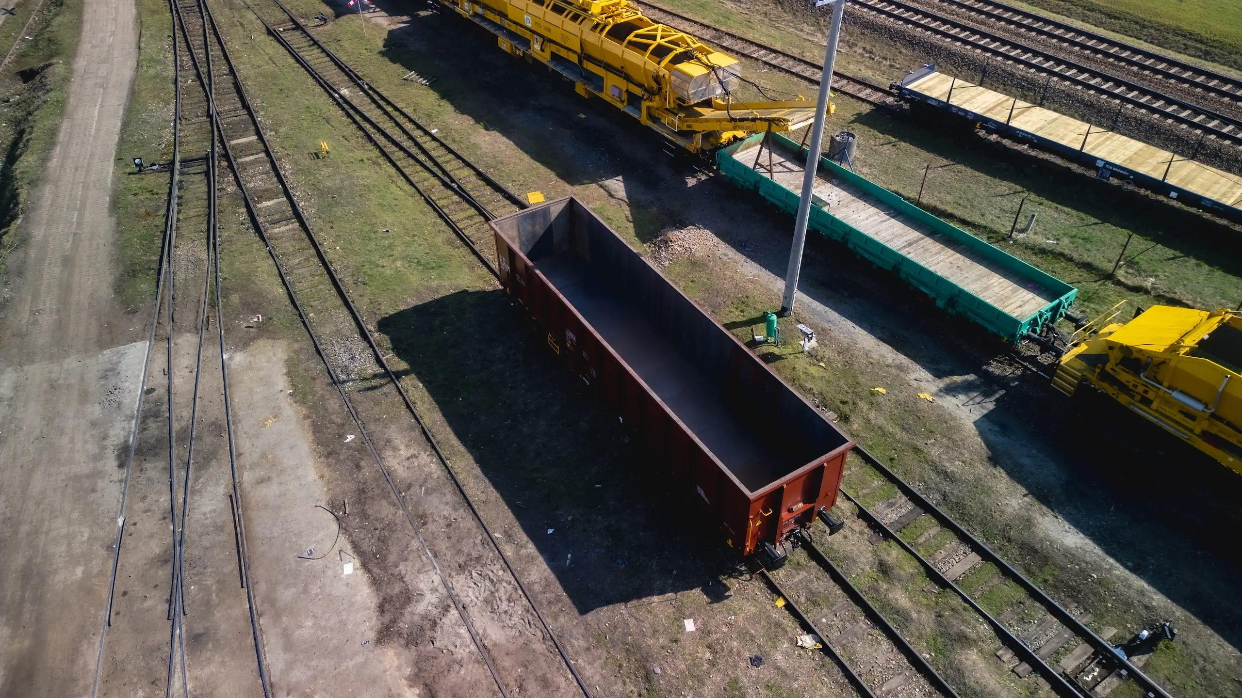 The wagon has fixed ends, and each side wall has two door openings measuring 1800×1900 mm. The wagon has a full metal floor with a thickness of 6 mm. It is standardly equipped with a hand brake.